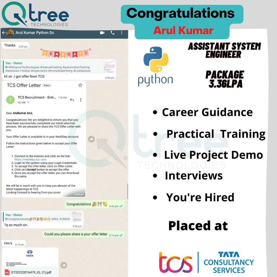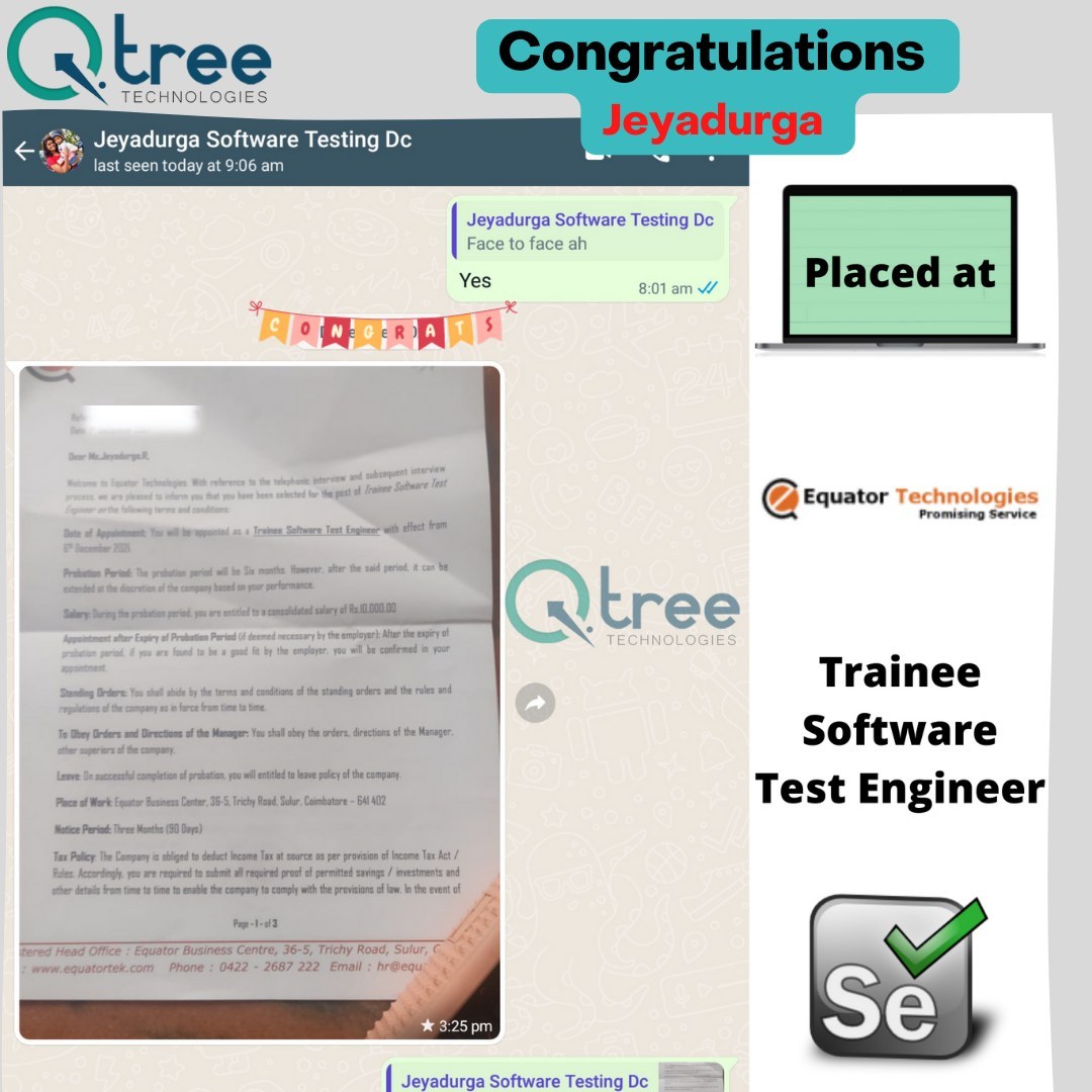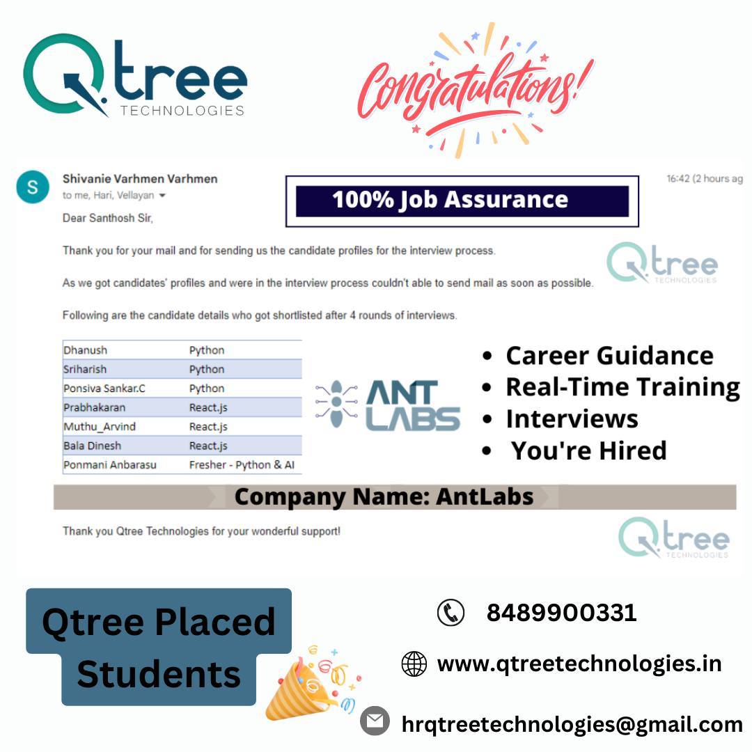 Joining at one of the best Placement training institutes in Coimbatore, such as Qtree Technologies, students can avail numerous benefits of getting placed in one of the top IT sectors.
